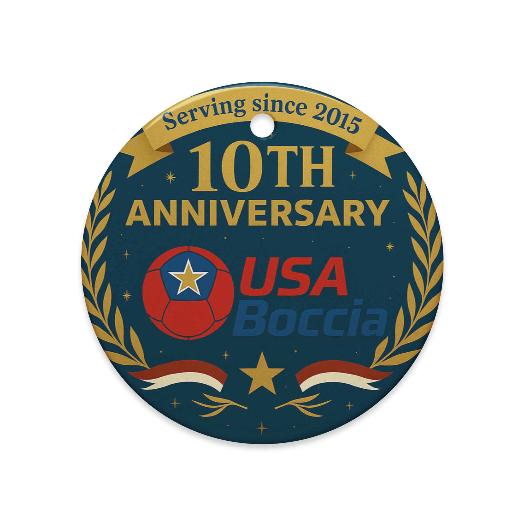 Celebrate the 10th anniversary of USA Boccia with our special edition holiday ornament. This ornament is a perfect addition to your Christmas tree or a great gift for any Boccia enthusiast. Made with high-quality materials, it's sure to last for many holiday seasons.